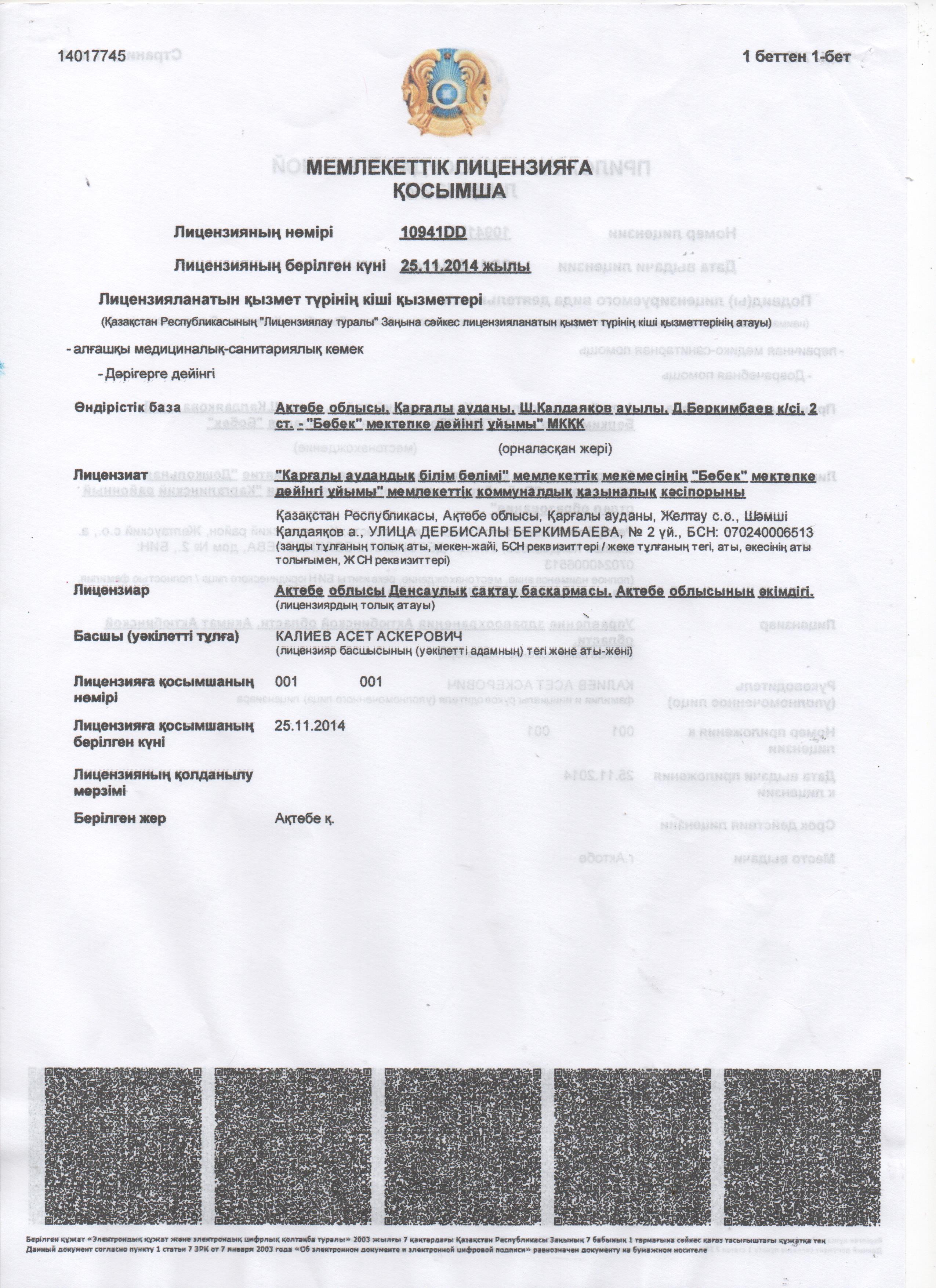 "Бөбек" бөбекжай балабақшасының жоспарлары